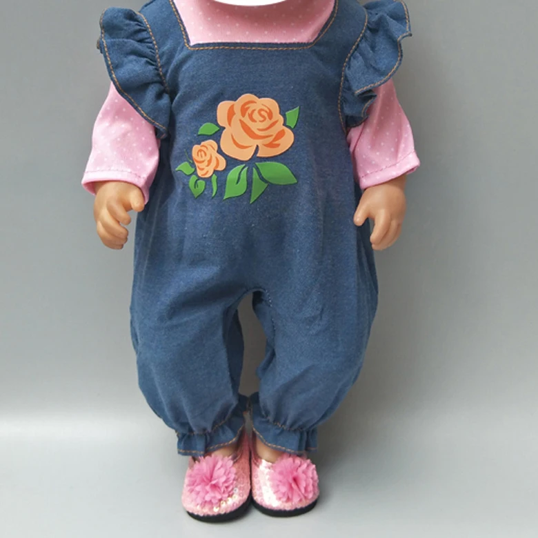 Limited Price of 18 inch doll jeans strap pants for 18" 43cm baby doll wear jeans pants kids girl Christmas gifts
