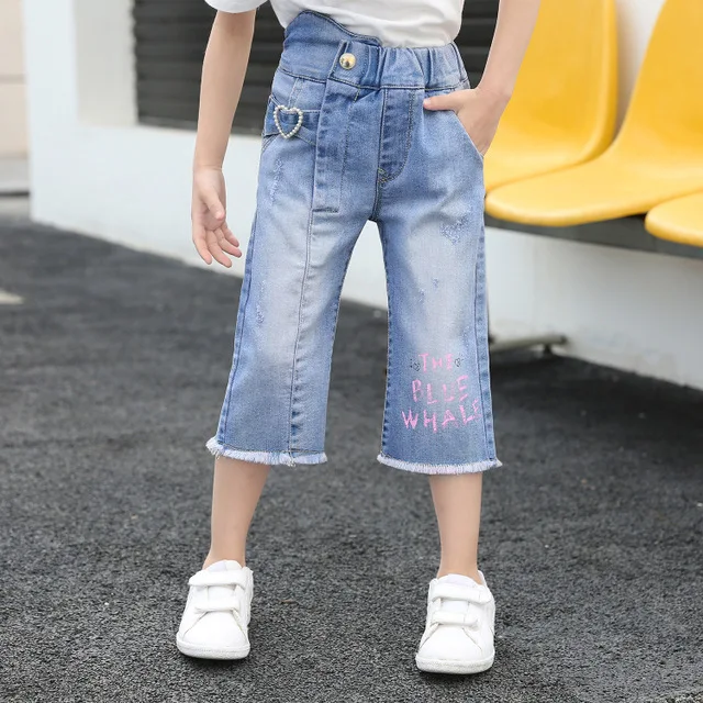 Good Offer for Baby Kid Girl Denim Capris Pants Cotton Casual Summer Casual Cuffs Calf-Length Jeans Pant Girls loo