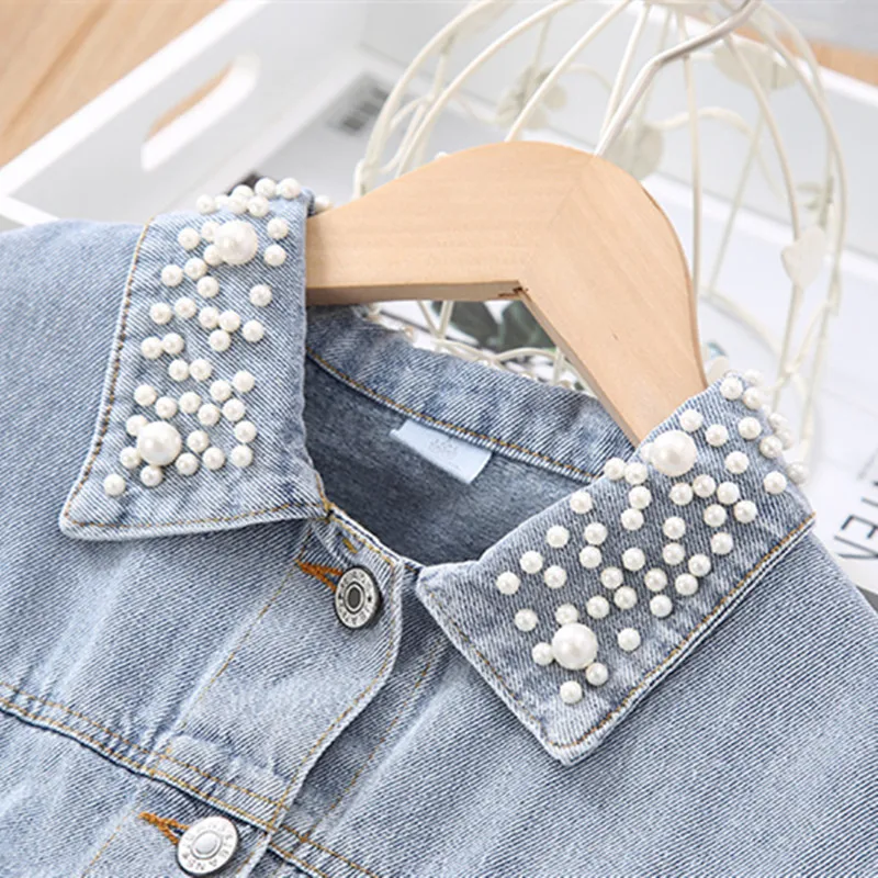Limited Price of Kids Girls Autumn Jeans Jackets 2019 Fashion Little Girls Long Sleeve Beading Lace Pockets Princess